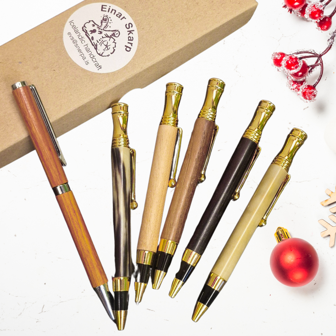Fallegir handgerðir pennar úr við eða hreindýrshorni. Góð gjöf fyrir þá sem allt eiga en vilja góða og þægilega penna sem gott er að skrifa með.